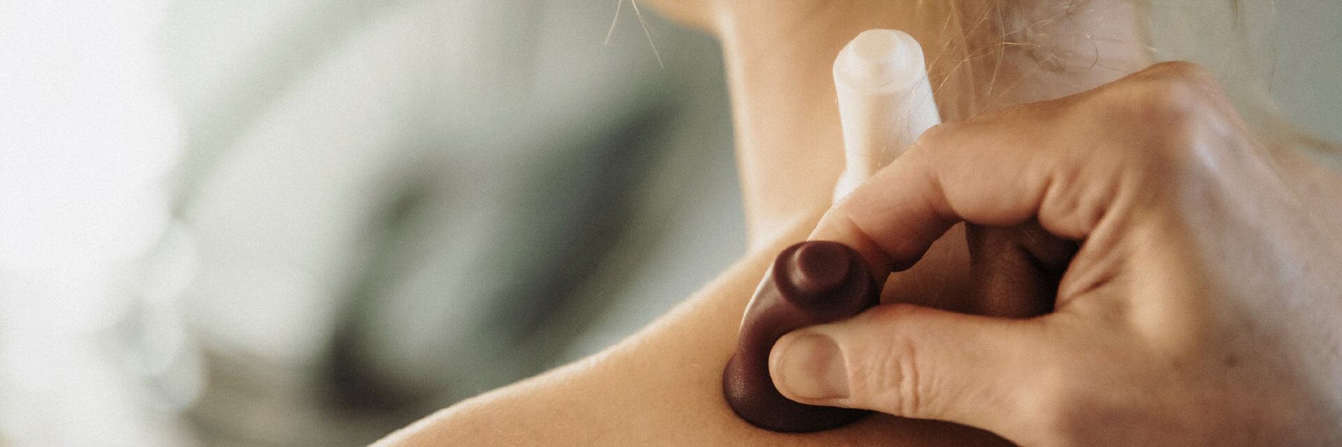 Beim Cupping werden Silikon-Cups mit Unterdruck auf die Haut aufgesetzt und in bestimmter Art und Weise bewegt.